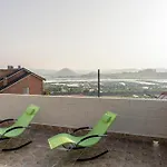 A 38 m²-es apartman vendégeinek erkélyt és teraszt kínál, kilátással a kertre.